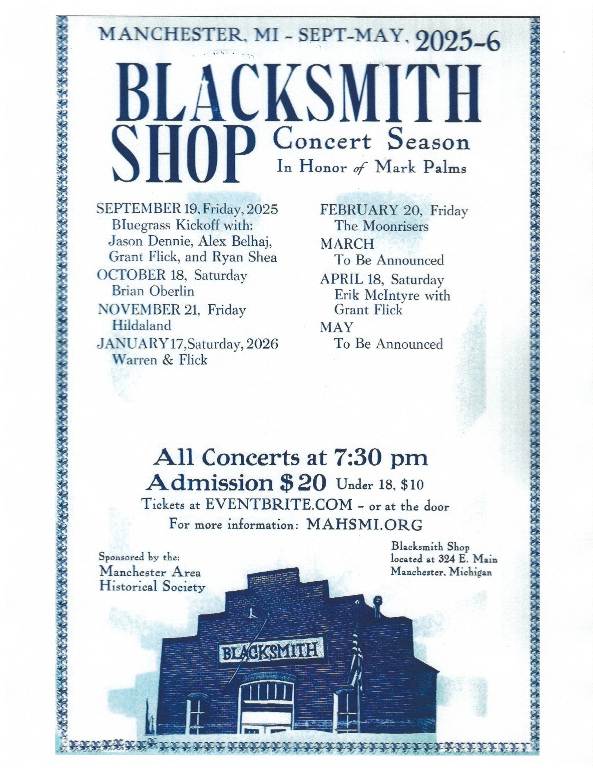 Manchester Area Historical Society (MAHS) strives to make Manchester area history interesting, useful and meaningful to the citizens of today. Please join us for our regular monthly meeting, held September through June, the second Thursday of the month, 7:00pm, at the Kingsley-Jenter House 302 E. Main St Manchester (unless otherwise noted).
